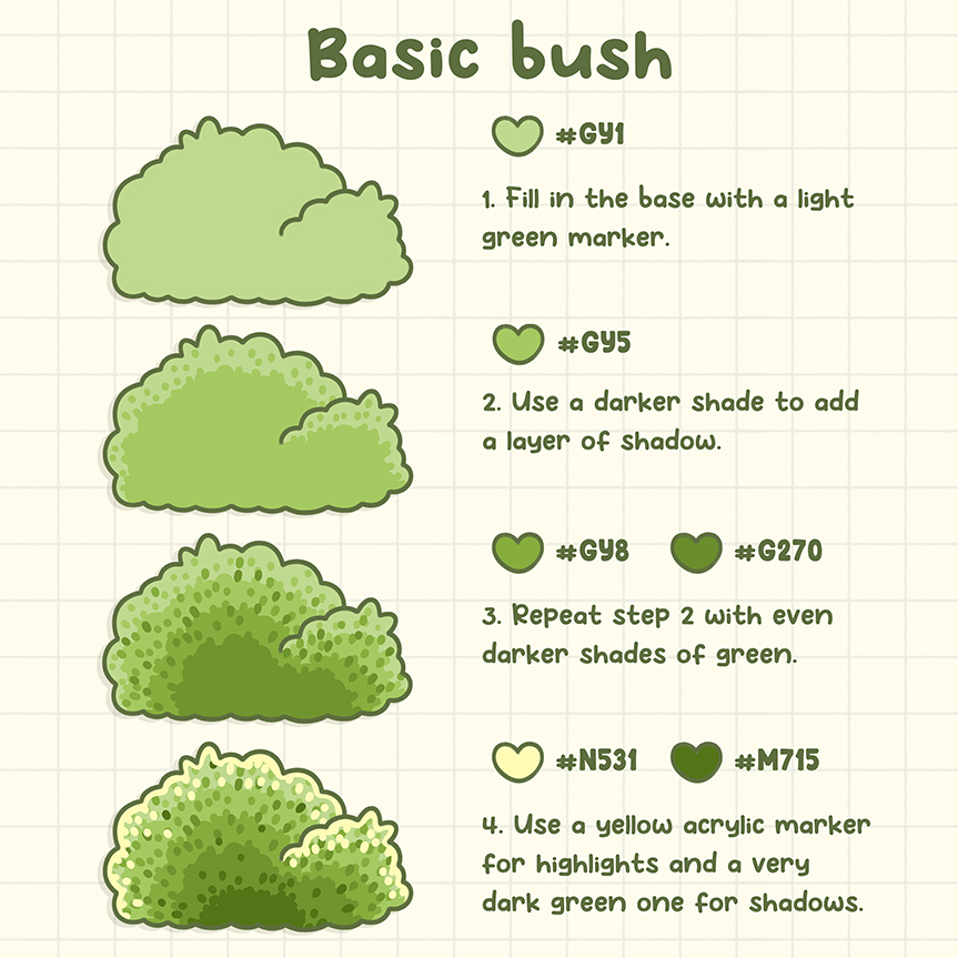 These four bush coloring techniques are the master key, helping you elevate your landscape coloring skills to a new level.