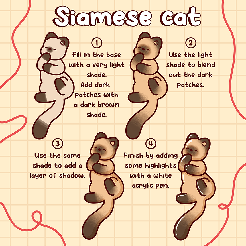- Creamy Base & Soft Light: Start with a very light cream or pale beige for the entire body. This layer is your "light canvas." It sets the tone for the Siamese's fur softness before you add shadows.