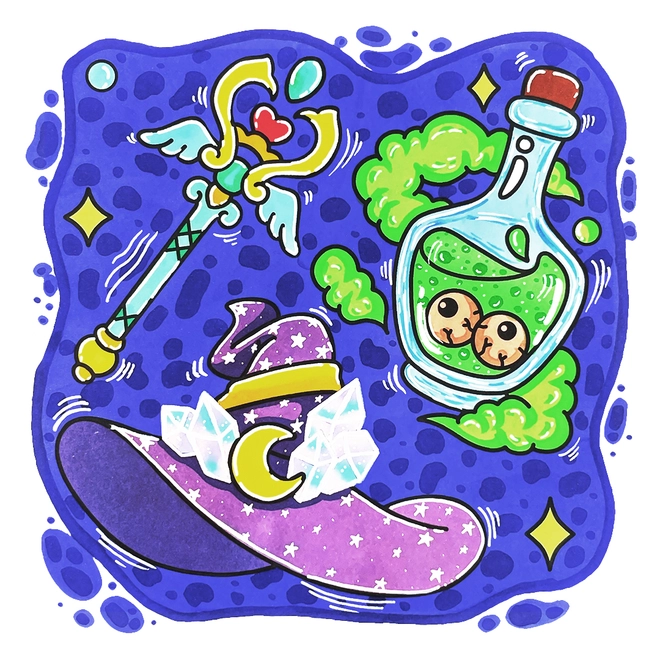 If you love bold and easy coloring books, this enchanting page will bring joy to your quiet creative moments. The whimsical details - from potion bottles bubbling with magic to the glowing moon resting on a hat - make this design a relaxing yet delightful experience for colorists of all levels.