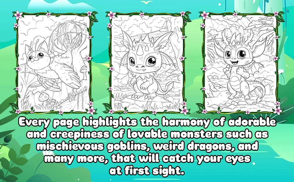 This captivating book features a collection of lovable monsters such as mischievous goblins, weird dragons, and many more, that will catch your eyes at first sight. With intricate details and the harmony of charm and creepiness, this coloring book will create hours of entertainment and relaxation.