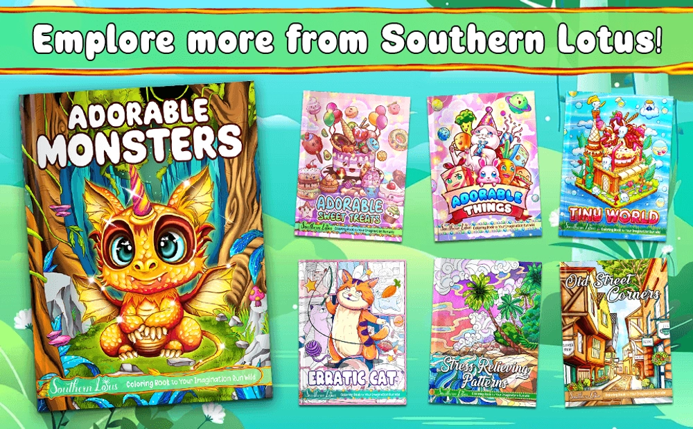 Enter the imaginary world with the Adorable Monsters Coloring Book by Southern Lotus.