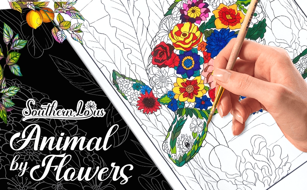 Animal By Flower Coloring Book by Southern Lotus.
