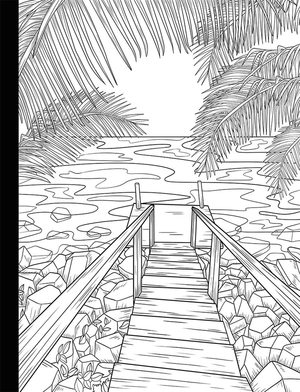 Immerse yourself in the relaxing atmosphere of the coast as you color your way through picturesque beaches, palm trees, warm houses, and blue waters. Let the soothing sound of the waves and the warmth of the sun inspire your artistic soul and bring the beach to life with your vibrant colors.