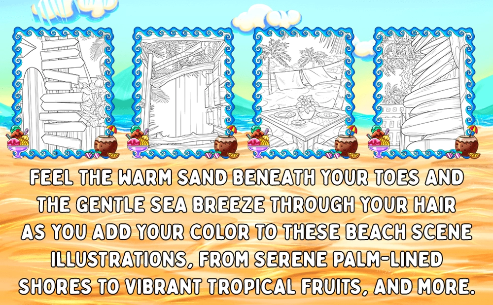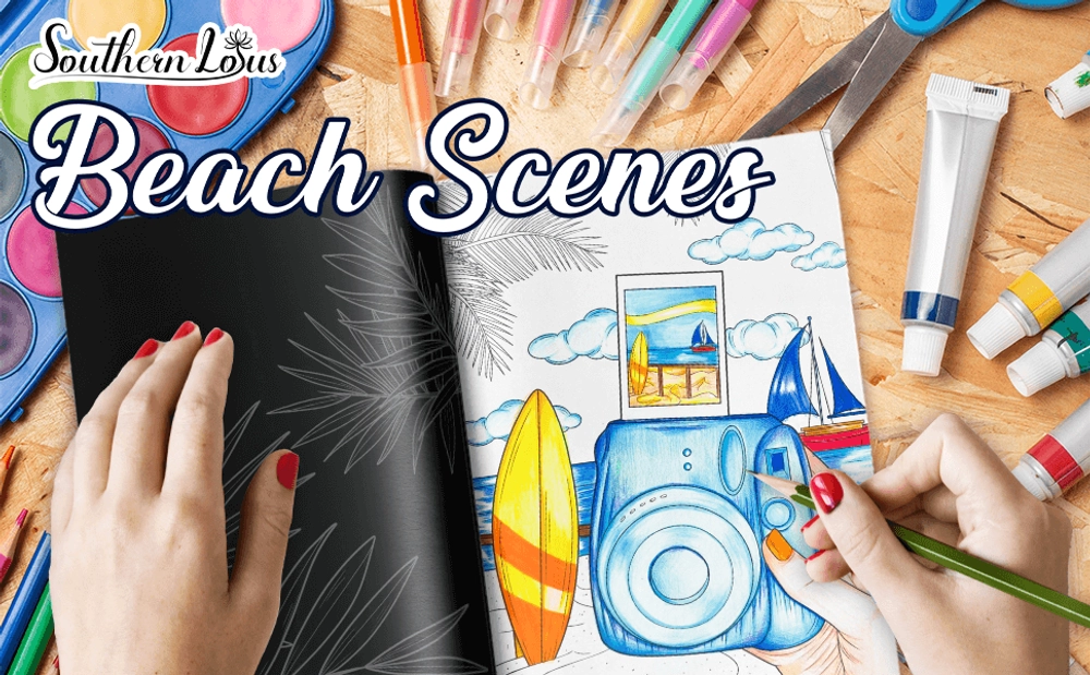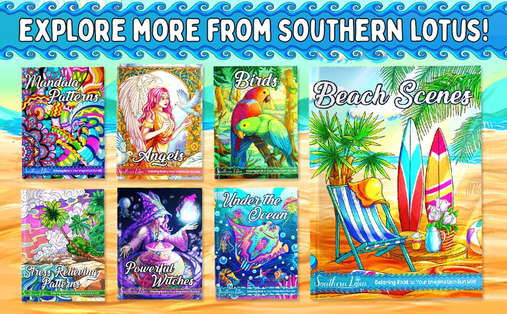 Dive into a space of sand and waves with the Beach Scenes Coloring Book by Southern Lotus.