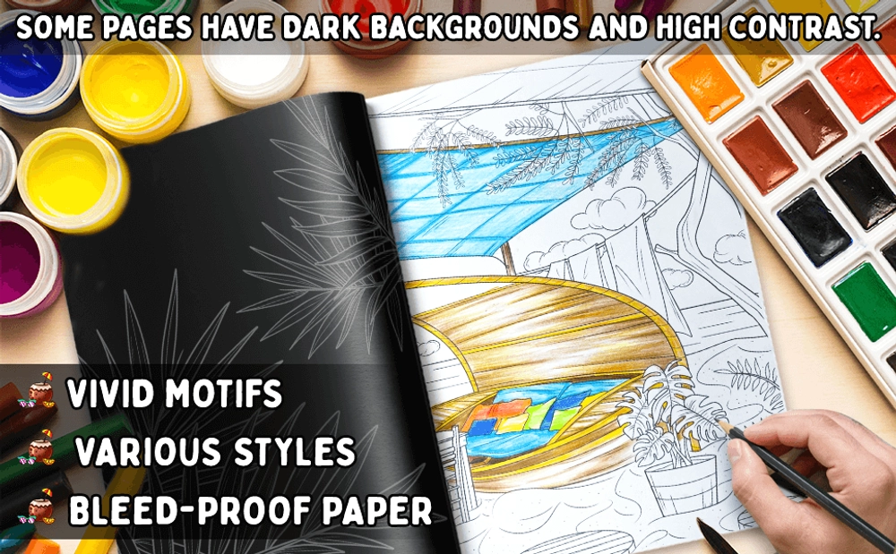 - Vivid images: black-and-white papers filled with various artistic illustrations and stunning designs.