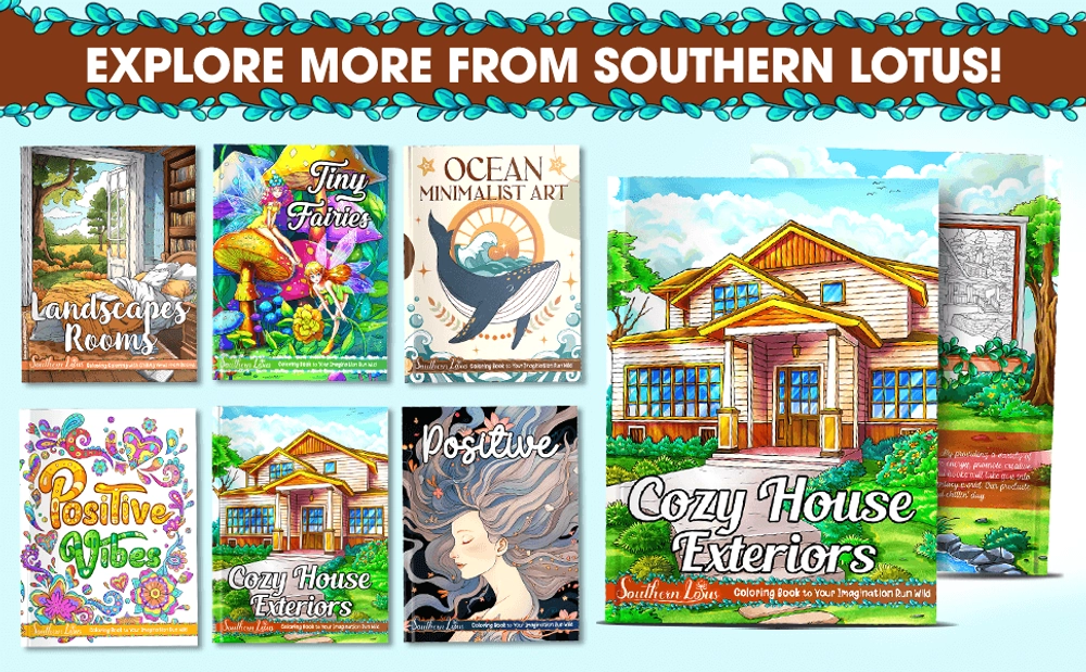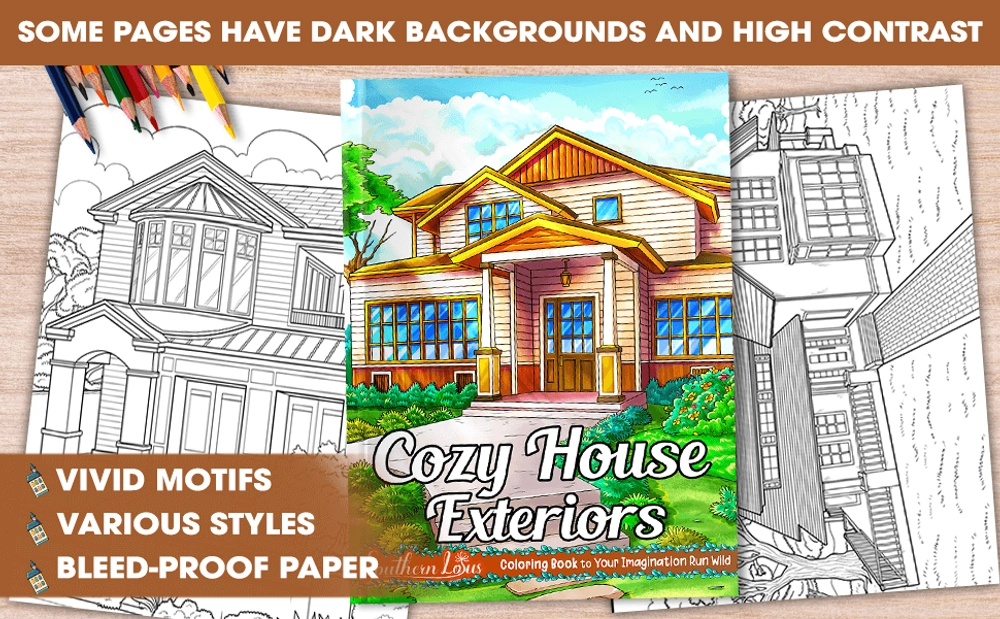 Cozy House Exteriors Coloring Book by Southern Lotus.