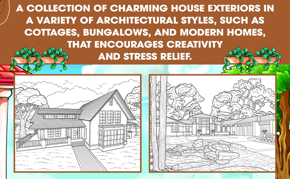 Step into the heartwarming scenes of this coloring book that captures the charm of houses, tranquil neighborhoods, and picturesque landscapes. From quaint cottages to stylish suburban homes, each illustration invites you to add your color to the exteriors, creating a cozy ambiance with every stroke.