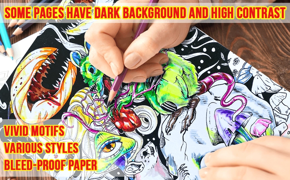 - Vivid images: black-and-white paper filled with 30+ artistic illustrations and elaborate designs of creepy animals