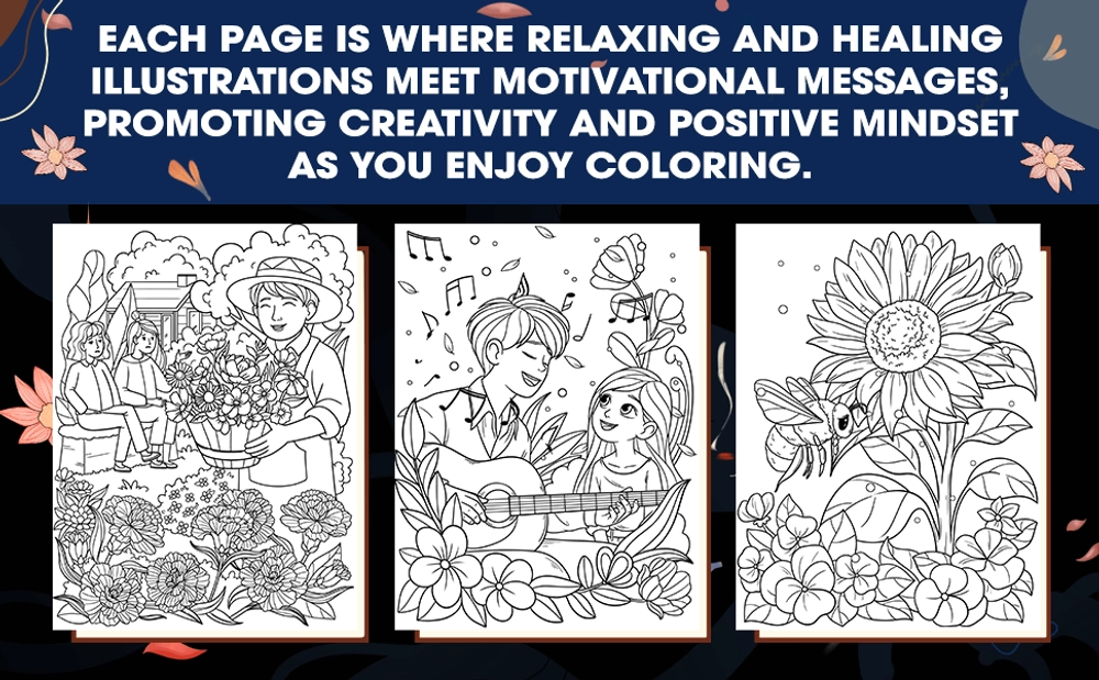 This coloring book is an uplifting journey that combines the joy of coloring with the power of healing words. What sets our coloring book apart is the inclusion of thoughtful and positive text alongside each coloring page. Immerse yourself in a world of vibrant illustrations and empowering text that encourages a positive mindset, providing a therapeutic experience for your mind and spirit.